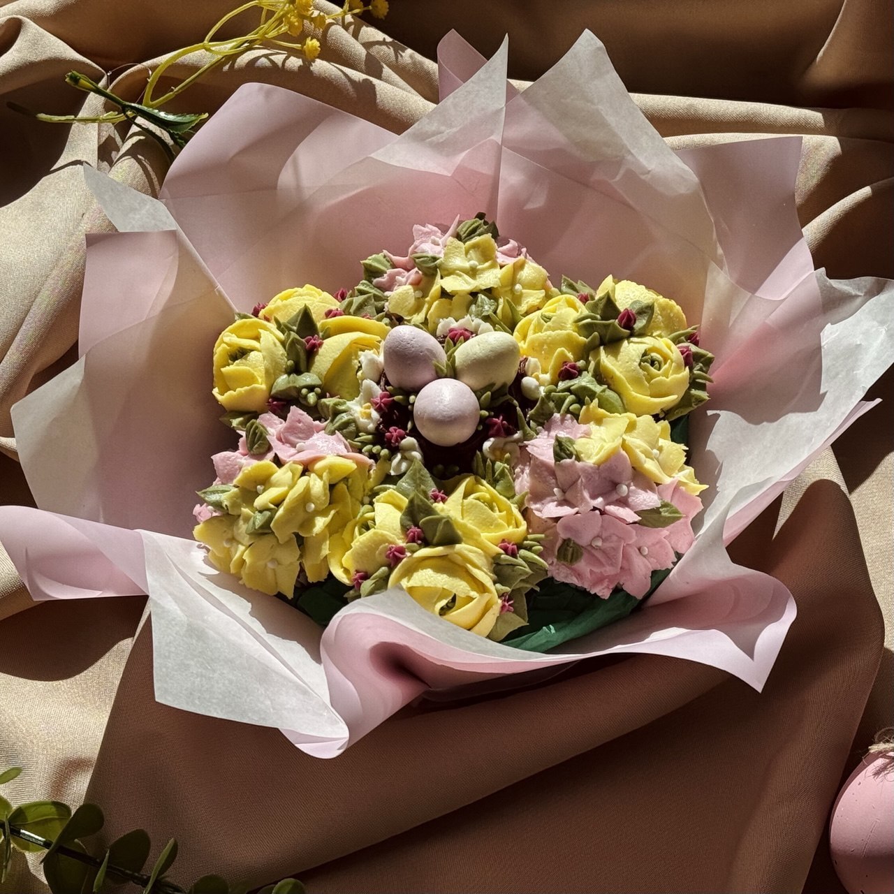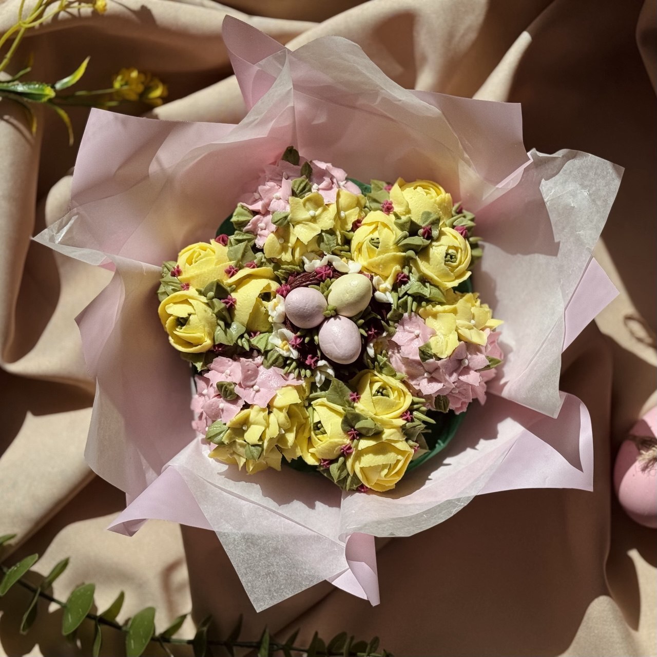 Изысканный десерт, созданный как произведение искусства — пасхальный капкейк-букет «Гнёздышко».